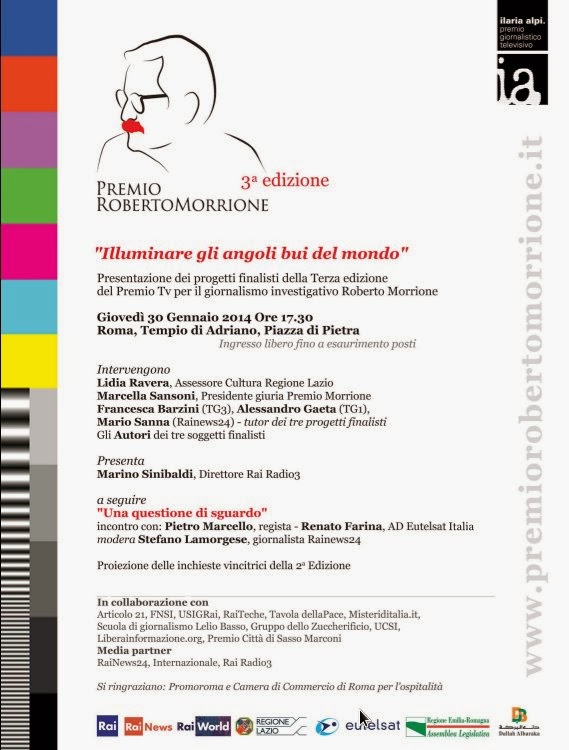Giovedì 30 Gennaio alle ore 17.30 a Roma (Tempio di Adriano) presentazione dei finalisti della terza edizione del Premio Tv per il giornalismo investigativo Roberto Morrione.